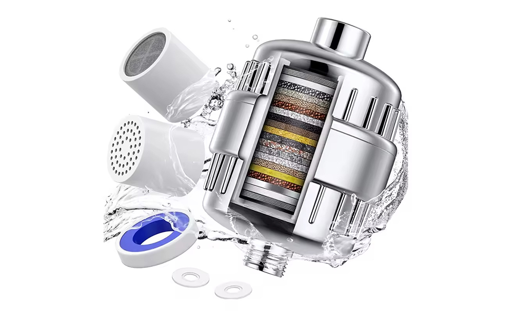 Our 20-stage vitamin shower filter effectively removes chlorine and softens water.